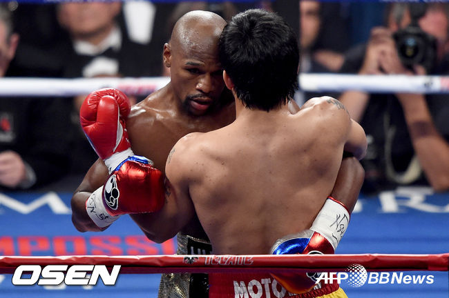 매니 파퀴아오와 플로이드 메이웨더는 3일(한국시간) 미국 네바다 라스베가스 MGM 그랜드 가든 아레나에서 맞대결을 펼쳤다. 12라운드로 열린 가운데 메이웨더가 판정 끝에 심판 전원 일치 판정승을 챙겼다.