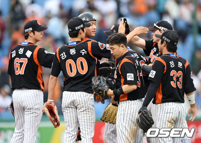 경기 종료 후 롯데 선수들이 승리의 기쁨을 나누고 있다./sunday@osen.co.kr