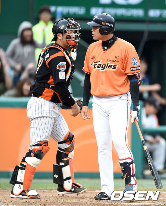 9회말 2사 2루에서 한화 최진행이 삼진으로 물러나며 아쉬워하고 있다./sunday@osen.co.kr