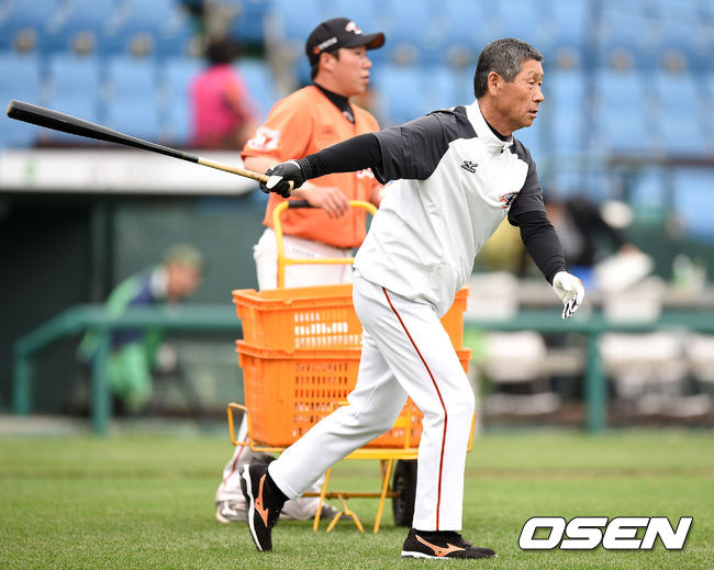 경기 종료 후 한화 김성근 감독이 강경학, 정근우의 수비 훈련을 지도하고 있다./sunday@osen.co.kr