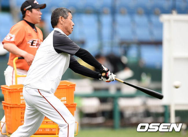 경기 종료 후 한화 김성근 감독이 강경학, 정근우의 수비 훈련을 지도하고 있다./sunday@osen.co.kr