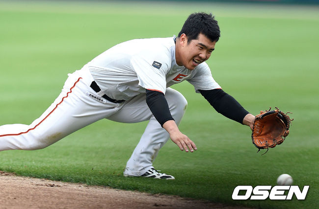 경기 종료 후 한화 정근우가 수비 훈련을 하고 있다./sunday@osen.co.kr