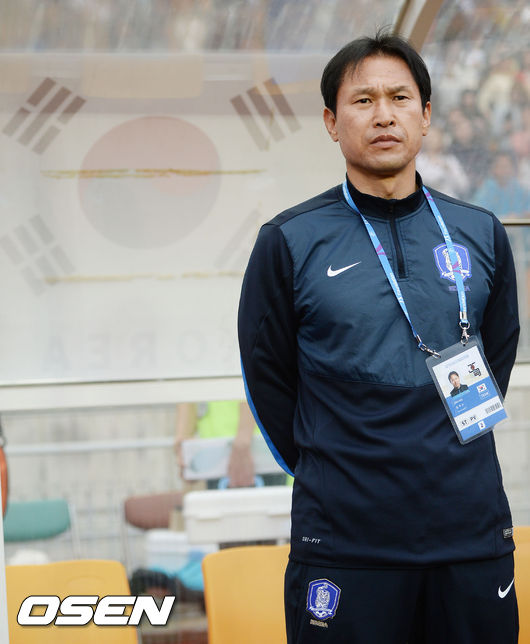 3일 오후 경기도 수원시 수원월드컵경기장에서 열린 '2015 수원 JS컵 U-18 국제청소년축구대회' 한국과 프랑스의 경기, 안익수 감독이 그라운드를 바라보고 있다.