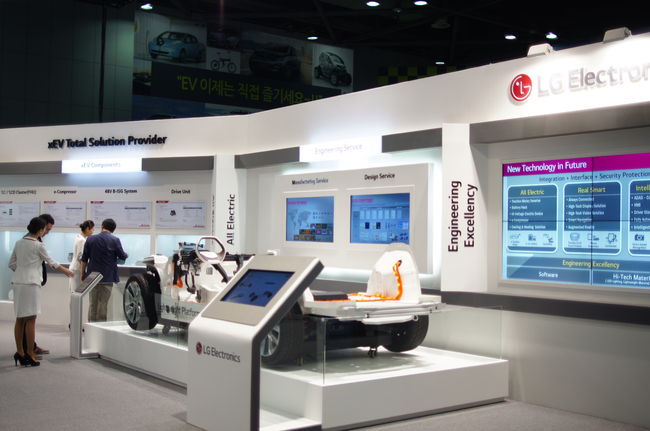 LG전자는 자사의 전기차용 부품을 탑재한 ‘경량 플랫폼’을 선보였다. 이는 배터리팩을 장착할 수 있는 플랫폼이며, 자동차용 경량화 복합재료와 자체 기술로 제작해 자동차 플랫폼의 중량을 약 20% 절감할 수 있다.
