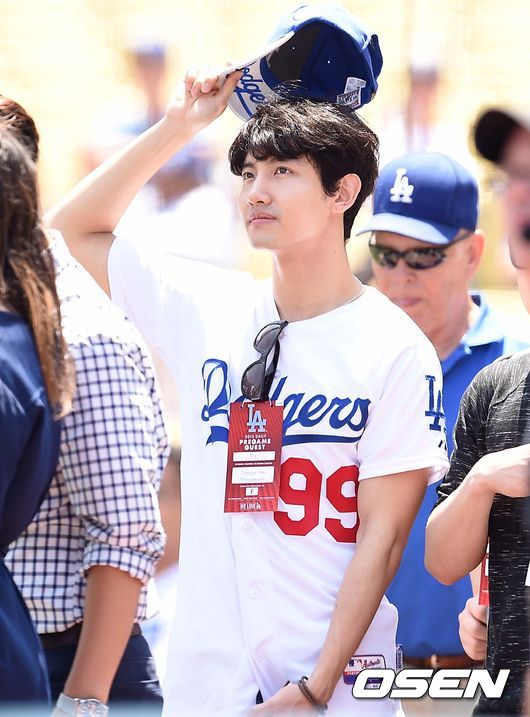 경기 시작을 앞두고 그룹 동방신기 최강창민이 다저스타디움을 찾아 그라운드를 둘러보고 있다.