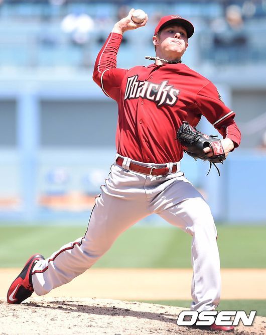 애리조나 선발 체이스 앤더슨이 힘차게 공을 뿌리고 있다.