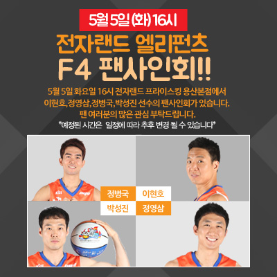 인천 전자랜드가 어린이 날을 맞아 5일 오후 4시부터 전자랜드 용산 본점에서 이현호, 정영삼, 정병국, 박성진의 사인회를 실시한다.
