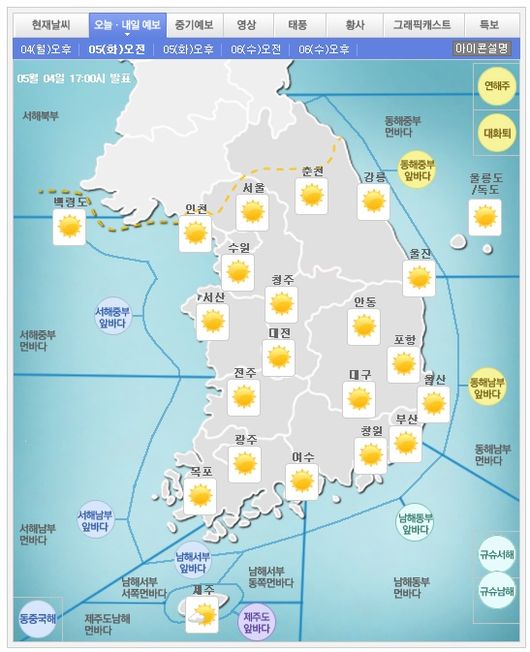 5일 어린이날 오전 기상청 일기예보 캡처.