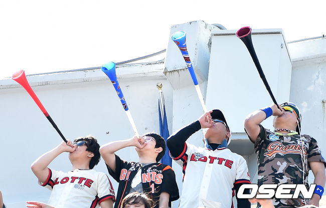 롯데 자이언츠 팬들의 열띤 부부젤라 응원