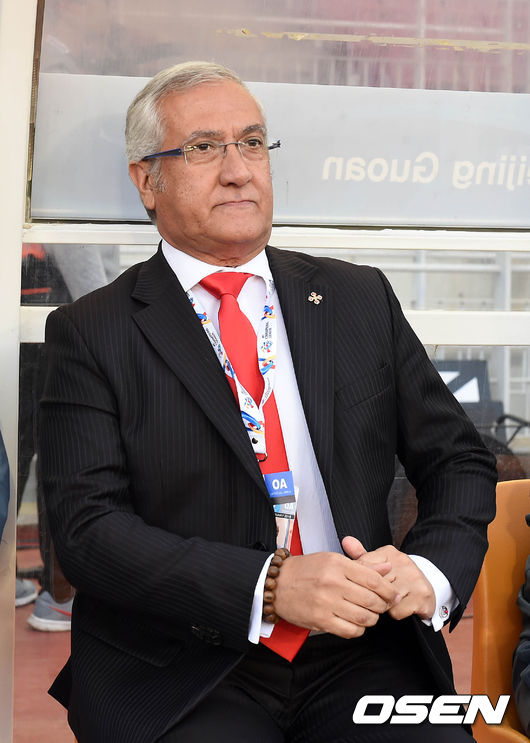 경기시작전 베이징 그레고리오 만사노 감독이 그라운드를 지켜보고 있다.