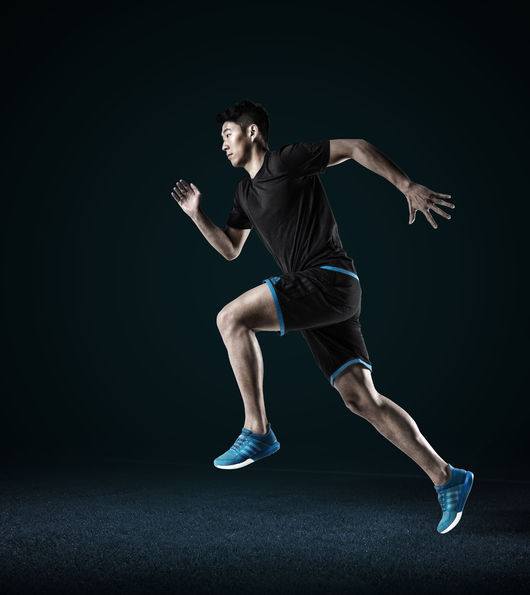 클라이마칠 슈즈를 착용한 손흥민과 클라이마칠 코스믹 부스트.