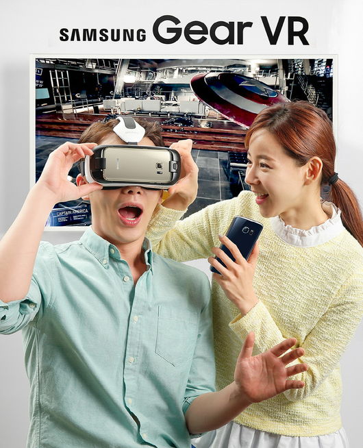 삼성전자가 갤럭시 S6와 결합해 가상 현실 콘텐츠를 즐길 수 있는 헤드셋 삼성 기어 VR을 7일 출시한다.