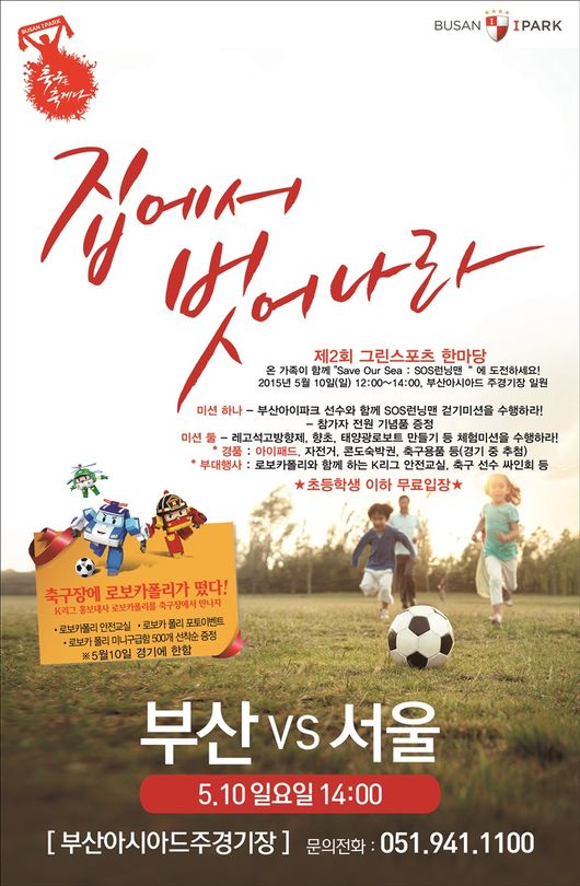 어린이 눈높이에 맞춰 인기 캐릭터인 로보카폴리도 이날 경기에 출전 준비를 마친 상황이다. 로보카폴리는 K리그 홍보대사로 이날 경기장을 방문한 어린이들과 함께 안전캠페인을 진행하고 선착순 500명에게 로보카폴리 미니구급함을 증정할 계획이다.
