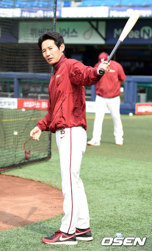 경기전 넥센 염경엽 감독이 가볍게 스윙을 하고 있다.