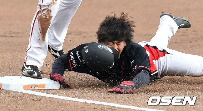6일 오후 대전 한화생명 이글스 파크에서 열린 '2015 타이어뱅크 KBO 리그' 한화 이글스와 kt 위즈의 경기 1회초 무사 1,2루 마르테의 병살타에 2루주자 하준호가 3루에서 포스아웃 당하고 있다.