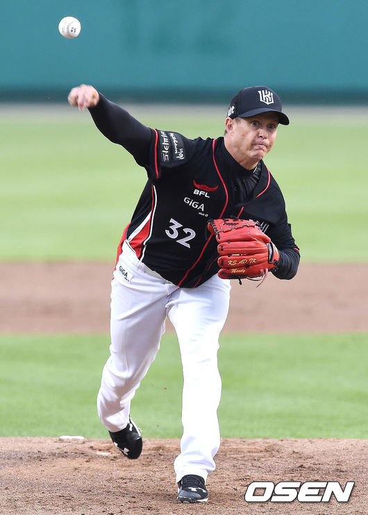 kt 외국인 투수 크리스 옥스프링이 한화에 고전했지만 승리 요건을 채웠다.