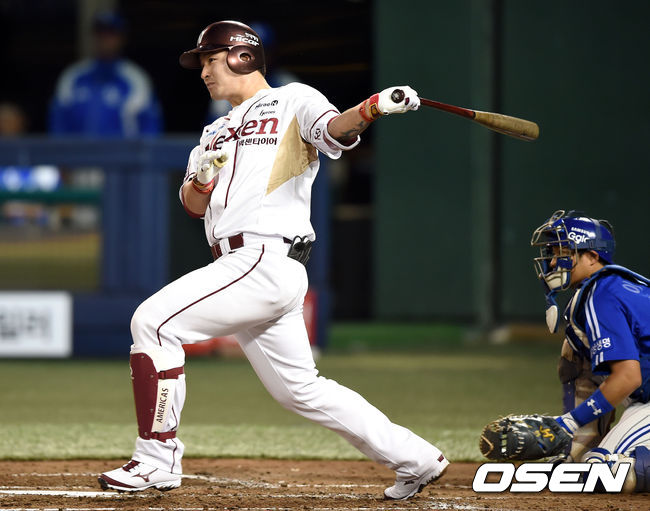 5회말 무사 넥센 박병호가 안타를 때리고 있다.