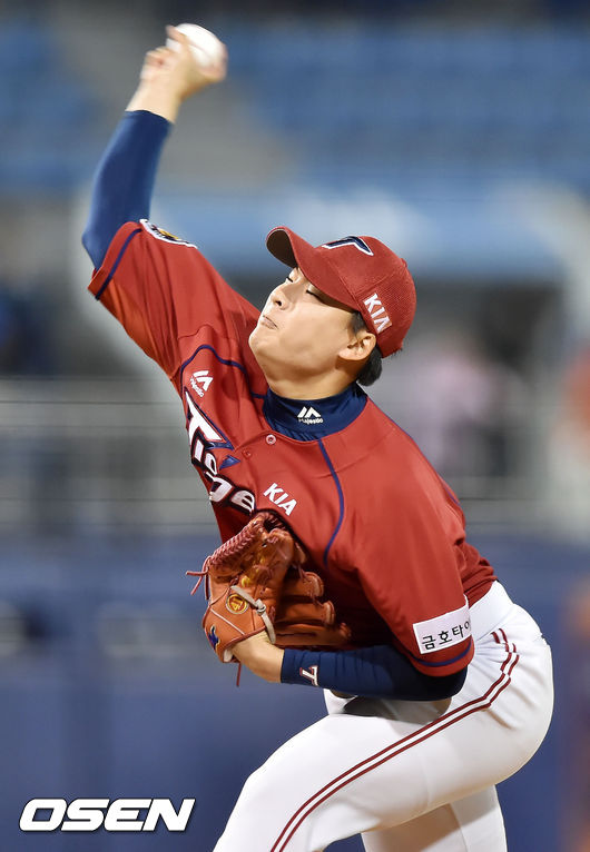 6일 오후 창원시 마산 야구장서 열린 '2015 타이어뱅크 KBO 리그' NC 다이노스와 KIA 타이거즈의 경기, 6회말 KIA 선발 양현종 대신 마운드에 오른 한승혁이 힘차게 공을 뿌리고 있다.