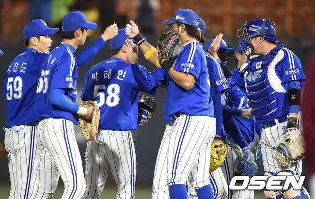 승리를 거둔 삼성 선수단이 기뻐하고 있다. / youngrae@osen.co.kr
