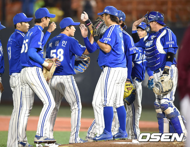 승리를 거둔 삼성 선수단이 기뻐하고 있다. / youngrae@osen.co.kr