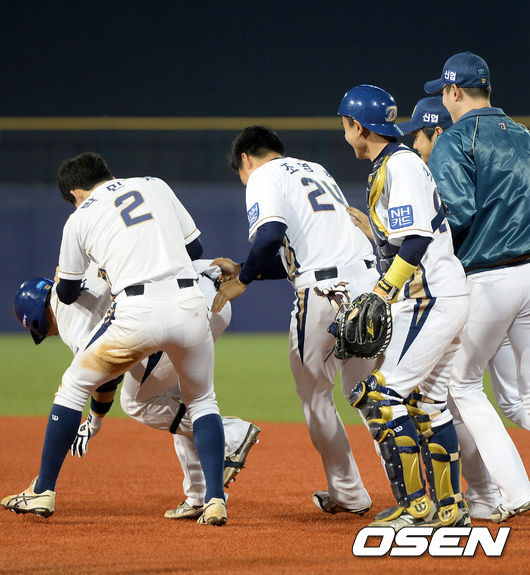 9회말 무사 만루 NC 지석훈이 끝내기 안타를 날리며 동료들과 기쁨을 나누고 있다./ rumi@osen.co.kr