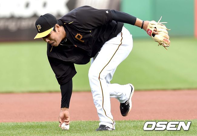 7일(한국시간) 미국 펜실베니아주 PNC파크에서 열리는 '2015 메이저리그' 피츠버그 파이어리츠와 신시내티 레즈의 경기를 앞두고, 피츠버그 강정호가 수비 훈련을 하고 있다.