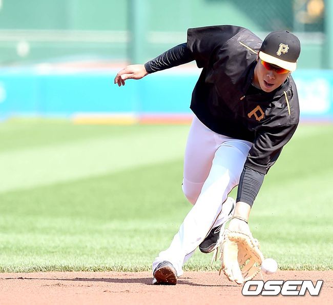 7일(한국시간) 미국 펜실베니아주 PNC파크에서 열리는 '2015 메이저리그' 피츠버그 파이어리츠와 신시내티 레즈의 경기를 앞두고, 피츠버그 강정호가 수비 훈련을 하고 있다.