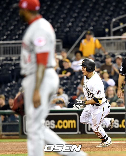 9회말 피츠버그 공격 1사 주자없는 상황 강정호가 3루수 방면 강한 타구로 2루타를 치고 그라운드를 달리고 있다./dreamer@osen.co.kr