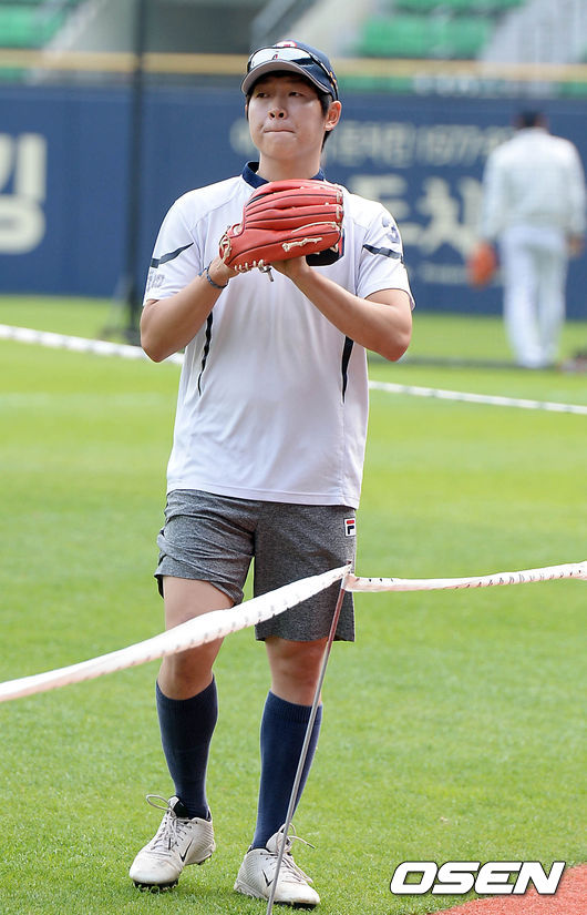 7일 오후 서울 잠실야구장에서 열린 '2015 타이어뱅크 KBO 리그' 두산 베어스와 LG 트윈스의 경기, 경기시작전 두산 정수빈이 훈련에 임하고 있다.