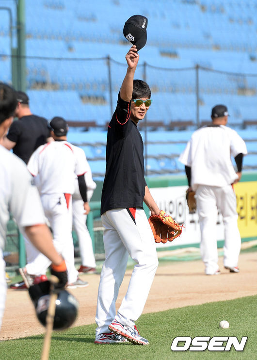 7일 오후 대전 한화생명 이글스 파크에서 열리는 '2015 타이어뱅크 KBO 리그' 한화 이글스와 kt 위즈의 경기 시작전 박기혁이 한화 선수들을 향해 손을 흔들고 있다.