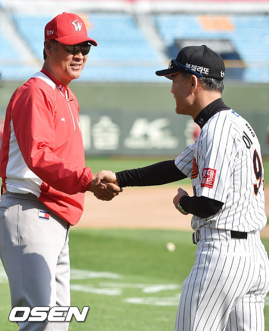 김용희 감독-이종운 감독,'경기 앞두고 뜨거운 악수'