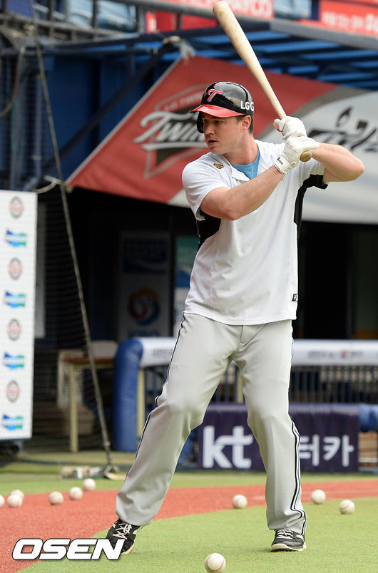7일 오후 서울 잠실야구장에서 열린 '2015 타이어뱅크 KBO 리그' 두산 베어스와 LG 트윈스의 경기, 경기시작전 LG 한나한이 훈련하고 있다.