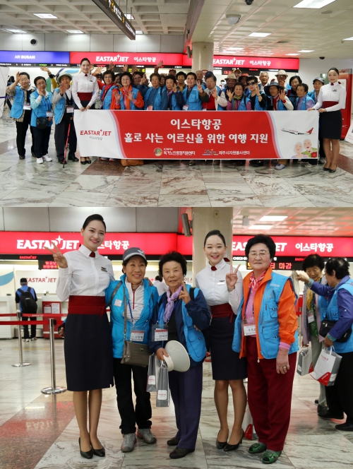 이스타항공은 제주지역에 거주하는 독거노인분들의 1박2일 서울나들이와 어버이날 행사 참석을 위한 독거노인 30명, 수행인원 5명 등 총 35명의 제주~김포 왕복 항공편과 이날 오전 김포공항에 도착한 어르신들에게 기내담요 등 기념품 증정 및 승무원들의 의전도 함께 진행했다.