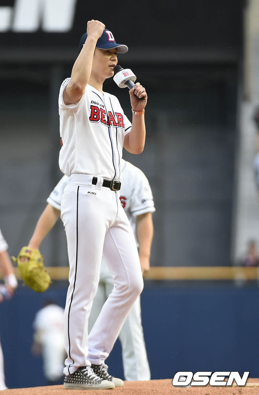 7일 오후 서울 잠실야구장에서 열린 '2015 타이어뱅크 KBO 리그' 두산 베어스와 LG 트윈스의 경기, 경기시작전 최현선 셰프가 시구를 하고 있다.