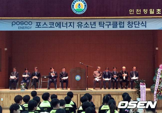 포스코에너지는 7일 인천 서구 청일초등학교에서 유소년 탁구클럽을 창단했다. 창단식에는 양흥열 포스코에너지 여자탁구단장, 노순명 인천시체육회 부회장, 정현숙 대한탁구협회 부회장, 박도천 대한탁구협회 부회장 등 탁구 관계자와 유소년 탁구클럽 회원 및 가족들이 참석했다.