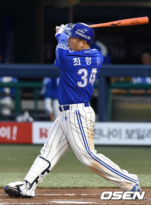 3회초 1사에서 삼성 최형우가 우중월 솔로 홈런을 치고 있다.