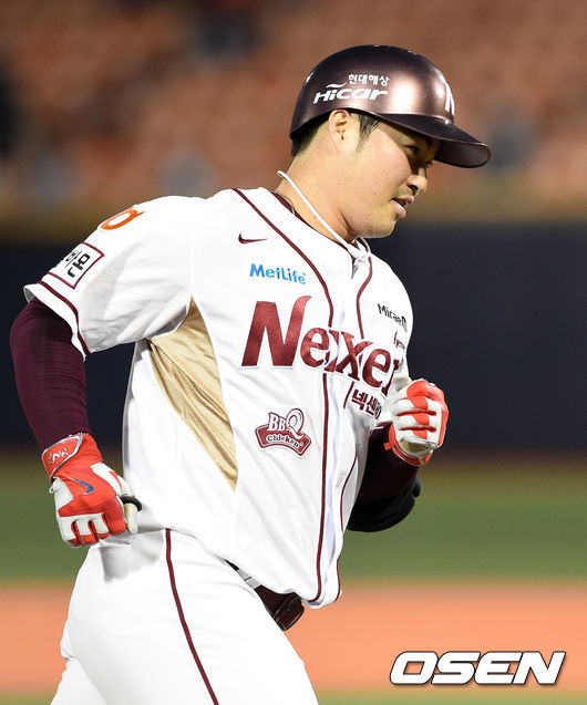 4회말 무사 1루에서 넥센 박헌도가 우월 투런 홈런을 치고 그라운드를 달리고 있다.