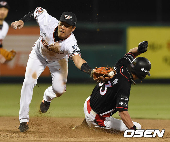 7일 오후 대전 한화생명 이글스 파크에서 열린 '2015 타이어뱅크 KBO 리그' 한화 이글스와 kt 위즈의 경기 7회초 1사 1루 마르테 타석, 1루주자 이대형이 도루에 성공하고 있다.