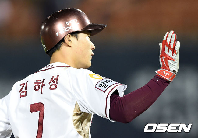7회말 무사에서 넥센 김하성이 좌월 솔로 홈런을 치고 그라운드를 달리고 있다.