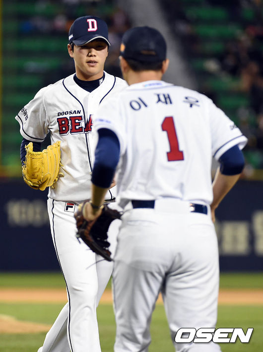 승리했던 6일 경기 뒷이야기는 김태형 감독의 복잡한 머릿속을 잘 보여준다. 7일 경기 전 이 맞대결을 돌아본 김 감독은 “선택의 여지가 없었다. 최선의 결과가 나온 것이다. 죽이 되든 밥이 되든 (노)경은이로 밀어붙이려 했는데 권명철 코치가 ‘바꾸시죠’라고 한 마디 하더라”고 말했다. 9회초 5-2로 앞서던 두산은 이현호와 노경은이 흔들려 5-4로 추격당했으나 무사 1, 2루에 나온 윤명준이 아웃카운트 3개를 채워 리드를 지킨 바 있다.