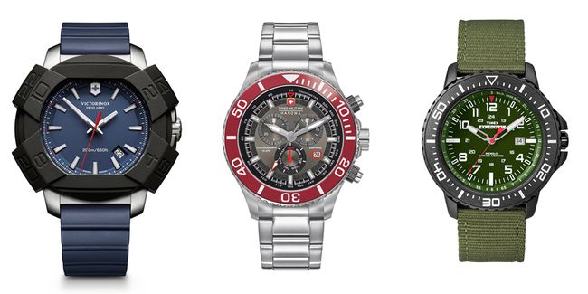 왼쪽부터 빅토리녹스 이녹스, 스위스 밀리터리 하노와 이멀젼, 타이맥스엑스페이션