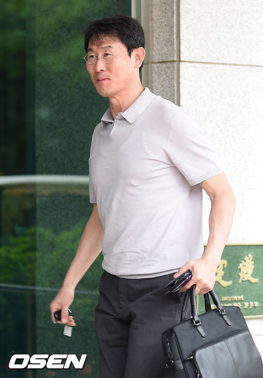 윤덕여 감독이 입소하고 있다.