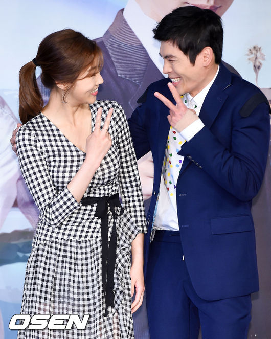 8일 오후 서울 상암동 MBC 신사옥에서 진행된 MBC 새 수목드라마 '맨도롱 또똣' 제작발표회에서 배우 강소라와 김성오가 포즈를 취하고 있다.