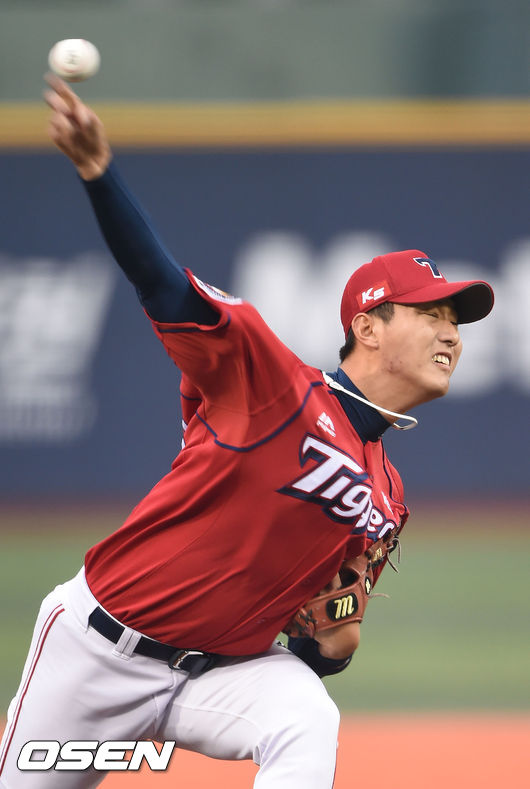 8일 오후 서울 목동구장서 열린 '2015 타이어뱅크 KBO 리그' 넥센 히어로즈와 KIA 타이거즈의 경기, 1회말 KIA 선발투수 홍건희가 역투하고 있다.