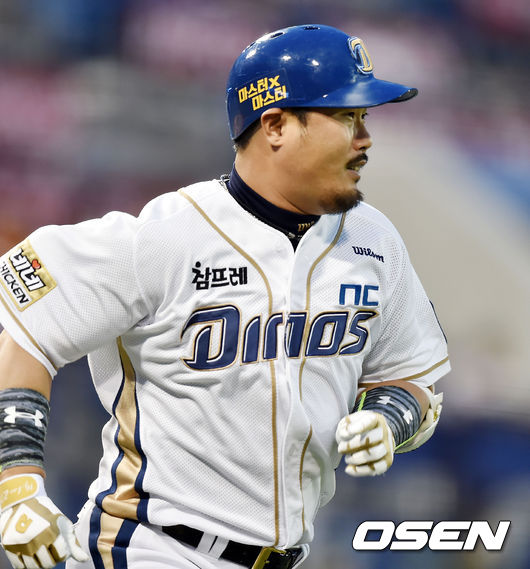 8일 오후 창원시 마산 야구장서 열린 '2015 타이어뱅크 KBO 리그' NC 다이노스와 롯데 자이언츠의 경기, 2회말 NC 선두타자 이호준이 좌월 동점 솔로 홈런을 날리며 달려나오고 있다.