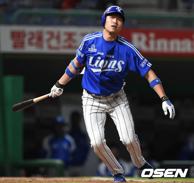8일 오후 인천광역시 남구 인천SK행복드림구장에서 열린 '2015 타이어뱅크 KBO 리그' SK 와이번스와 삼성 라이온즈의 경기 5회초 2사 박해민이 삼진을 당하고 있다.