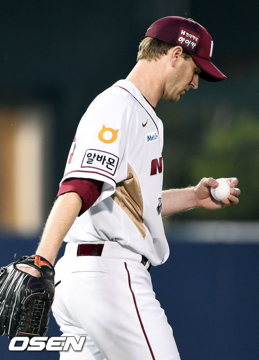 8일 오후 서울 목동구장서 열린 '2015 타이어뱅크 KBO 리그' 넥센 히어로즈와 KIA 타이거즈의 경기,6회초 1사 1,3루 KIA 김호령의 타석때 폭투로 동점을 허용한 넥센 선발투수 밴헤켄이 아쉬워하고 있다.
