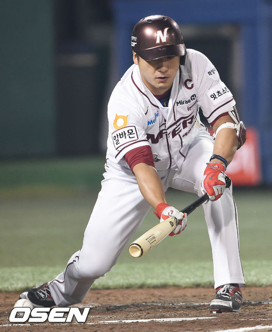 8일 오후 서울 목동구장서 열린 '2015 타이어뱅크 KBO 리그' 넥센 히어로즈와 KIA 타이거즈의 경기, 8회말 무사 1루 넥센 이택근이 번트시도하고 있다.