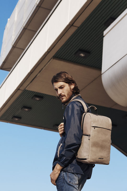 부드러운 터치감이 특징인 이태리 가죽을 사용하였으며 손이 많이 닿는 메인 수납부분 및 어깨끈 부분은 원단으로 만들어져 실용성을 높였다. 두 개로 나뉘어진 수납공간 중 뒤쪽의 노트북 수납공간에는 15인치 노트북을 수납할 수 있다. 등판 전체와 어깨끈은 쿠션처리 되어 있어 편안한 착장감을 느낄 수 있으며 하단에는 레인커버가 구성되어 실용적으로 활용할 수 있다.