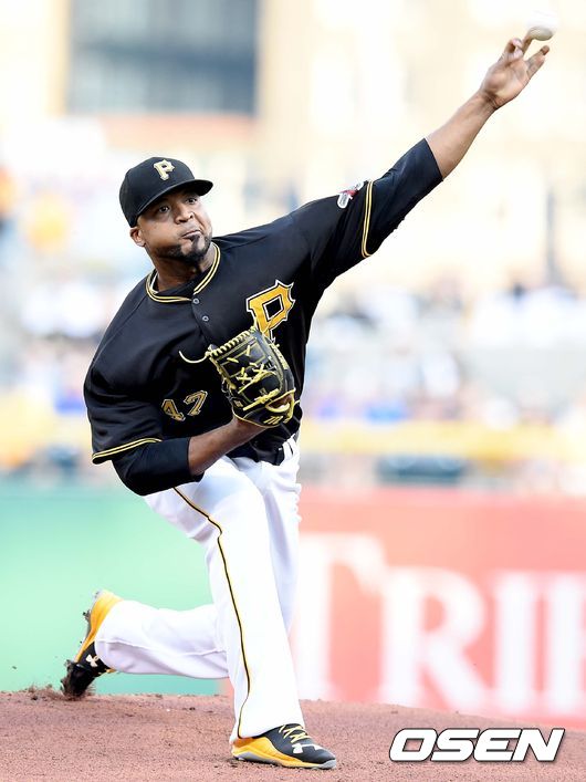 피츠버그 선발 프란시스코 리리아노가 힘차게 공을 뿌리고 있다.